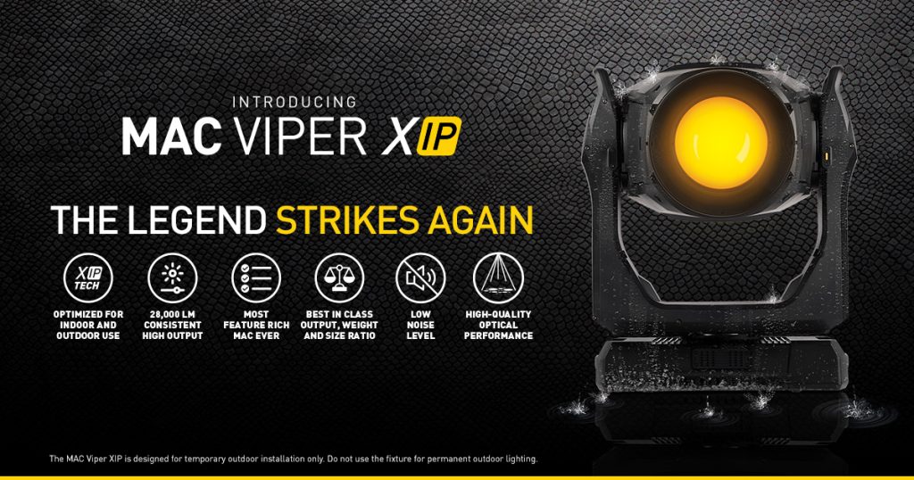 “We are proud to unveil this true leap forward for not just moving head lights but the pro lighting industry,” said Henrik Kristensen, Product Manager of Stage Lighting, Martin Professional. “We’ve taken the very best features of our long-running Viper HID lineup and elevated them to next-level LED performance and efficiency levels. Then we are adding our hugely popular XIP weatherproofing technology for indoor/outdoor/anywhere usability. Our MAC Aura XIP, that debuted XIP technology, continues to be one of our most specified fixtures for some of the world’s most demanding applications. In previewing the new MAC Viper XIP, interest has been staggering and we believe this fixture has significant potential to become one of the most exceptional and versatile moving heads ever built.”