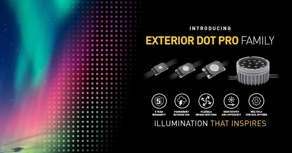 HARMAN Professional Solutions, the global leader in audio, video, control, and lighting systems, has announced its new Martin Exterior Dot Pro family of outdoor-rated RGBW LED dots. Combining exceptional performance, adaptability, and ease of use, the Exterior Dot Pro family empowers lighting designers and professionals to go beyond the limitations of traditional systems, inspiring them to push the boundaries of creative video design. These versatile LED dots are perfect for various outdoor and indoor fixed installations, such as stadiums, arenas, theme parks, ski resorts, hotels, casinos, bridges, landmarks, tunnels, cruise ships, churches, shopping malls, and more.